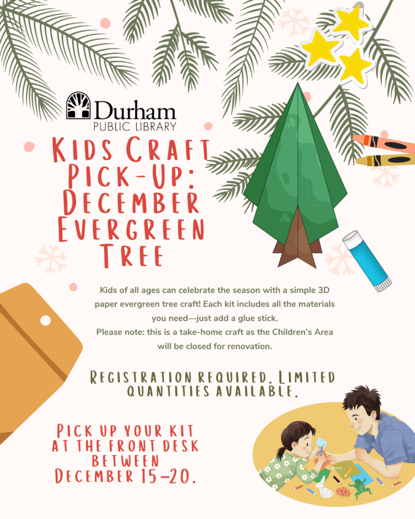 Please note: this is a take-home craft as the Children’s Area will be closed for renovation.