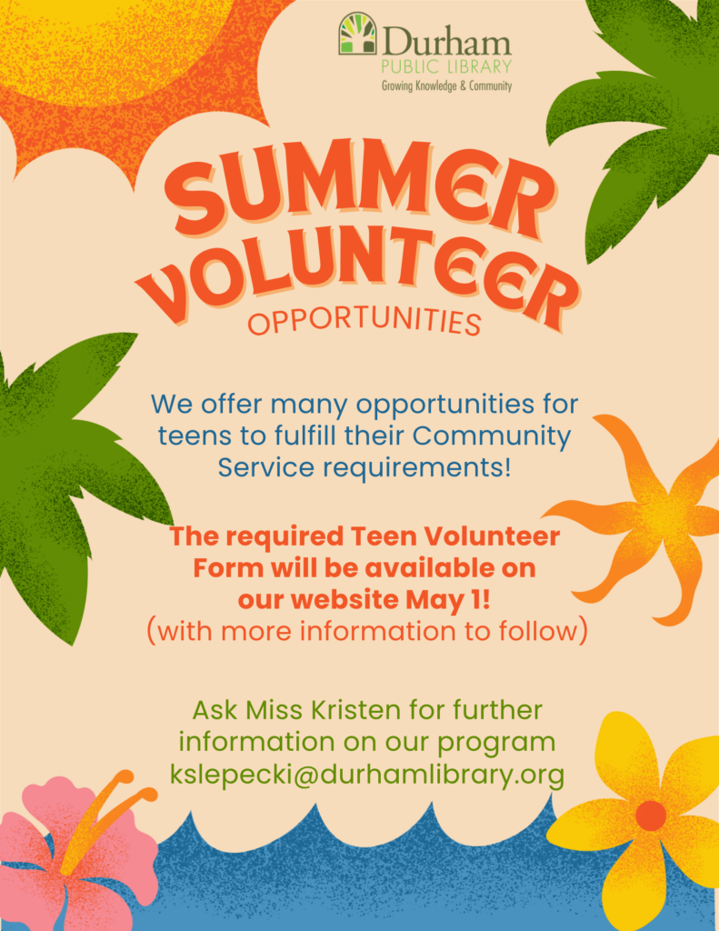 Fill out the updated form (https://tinyurl.com/DPLTBB ) to receive a monthly Teen Book Box from the Durham Public Library.