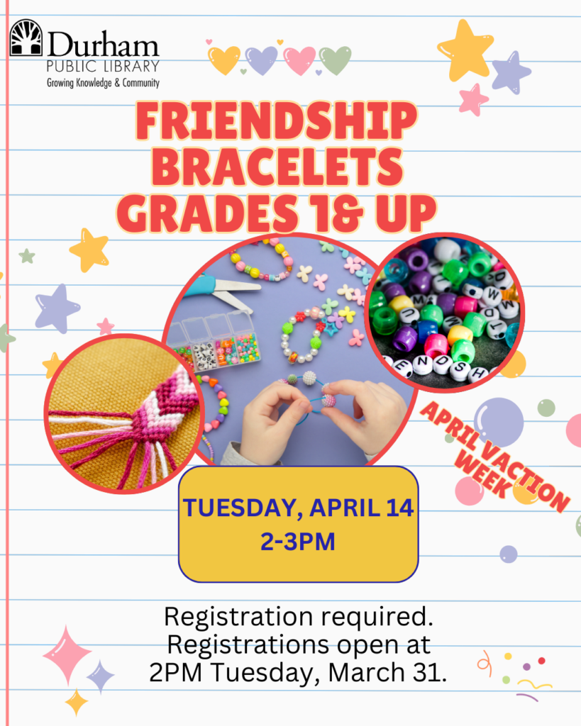 Help us design Durham Public Library’s 2026 “Read & Bead” brag tags! The theme is “Unearth a Story”, inspired by all types of Dinosaurs and digging. We’re looking for creative designs from kids, teens, and adults. Two winning designs will be awarded and used for next summer’s readers!