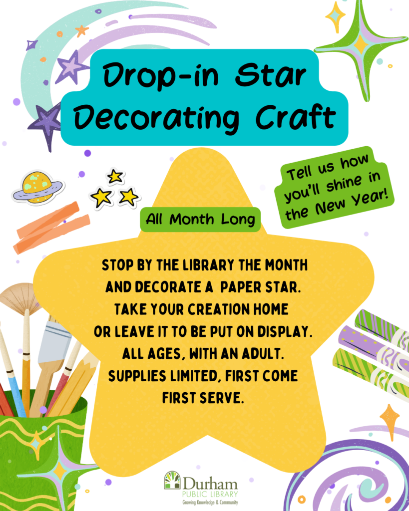 Please note: this is a take-home craft as the Children’s Area will be closed for renovation.