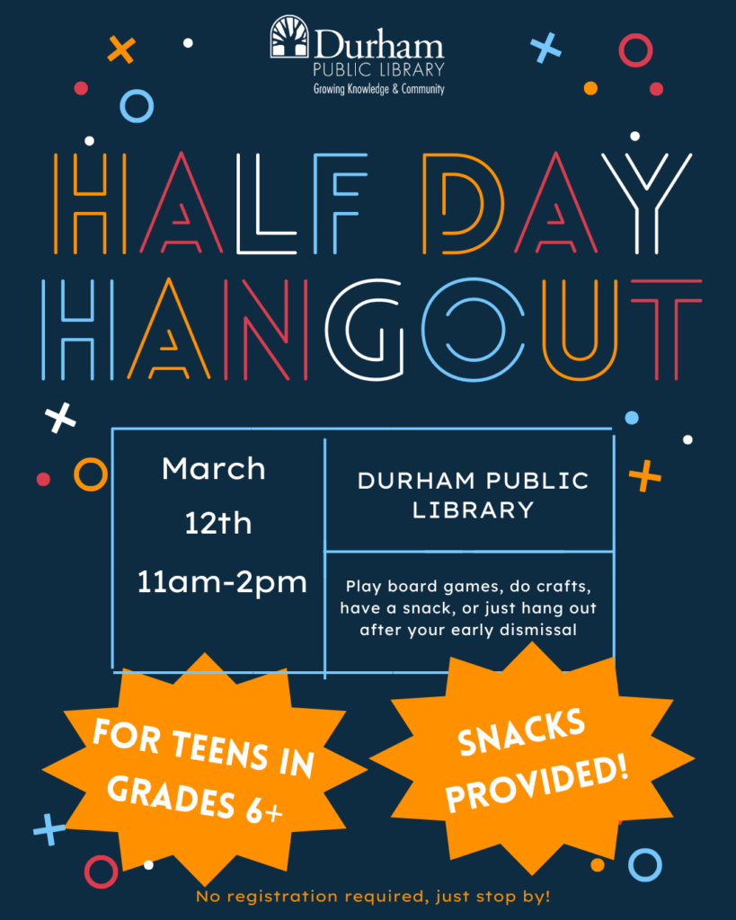 Come hang out at the library after your early dismissal on Thursday March 12th!