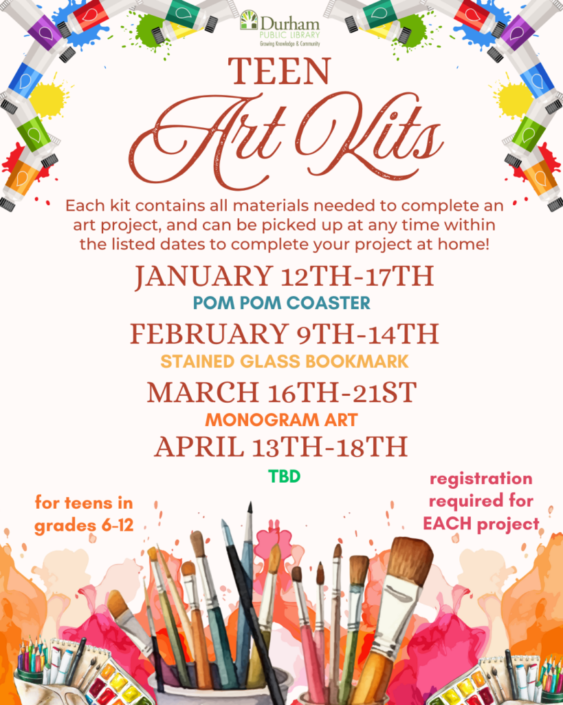 Fill out the updated form (https://tinyurl.com/DPLTBB ) to receive a monthly Teen Book Box from the Durham Public Library.